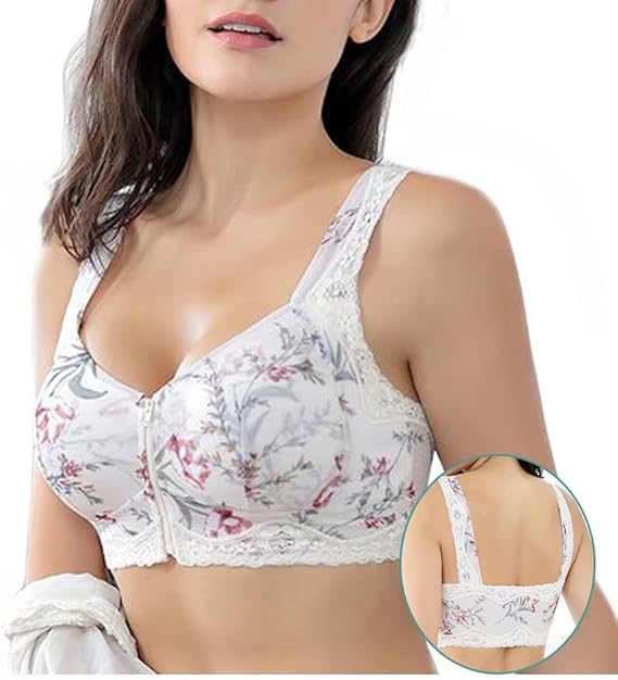 Front Zipper Wireless Flower Bra instantly lifts and provides ultimate breast support against sagging while keeping an upright posture & seamless look with anything you put on.